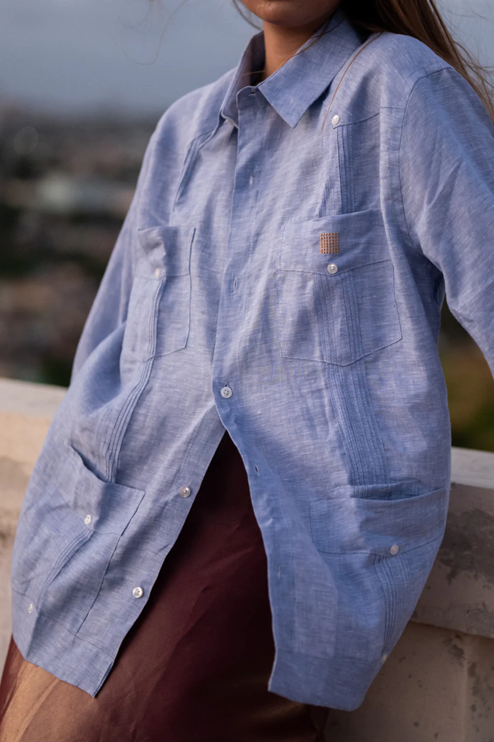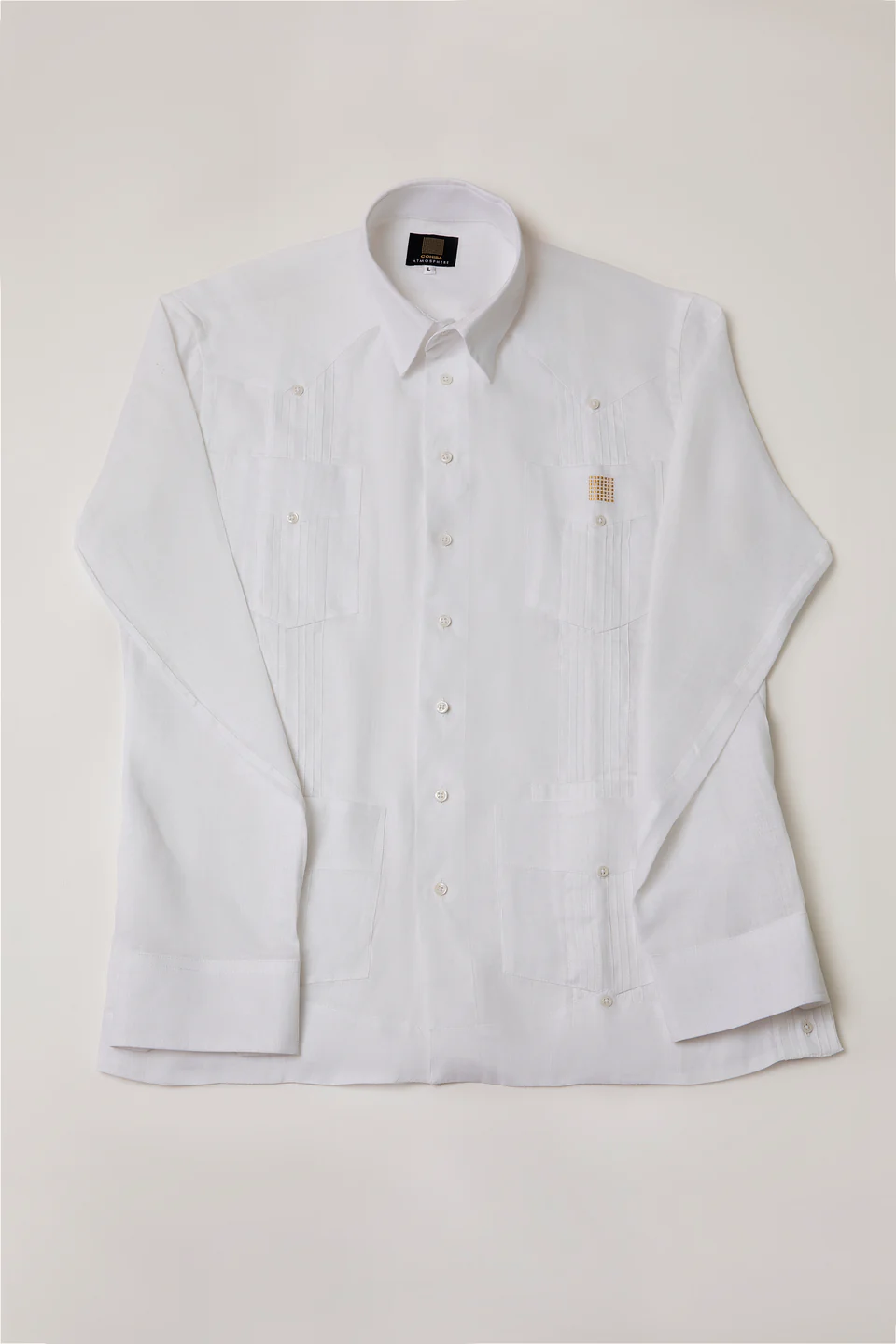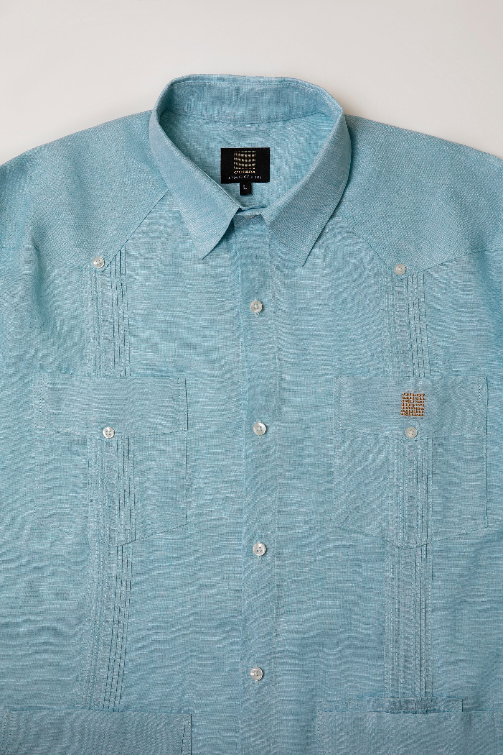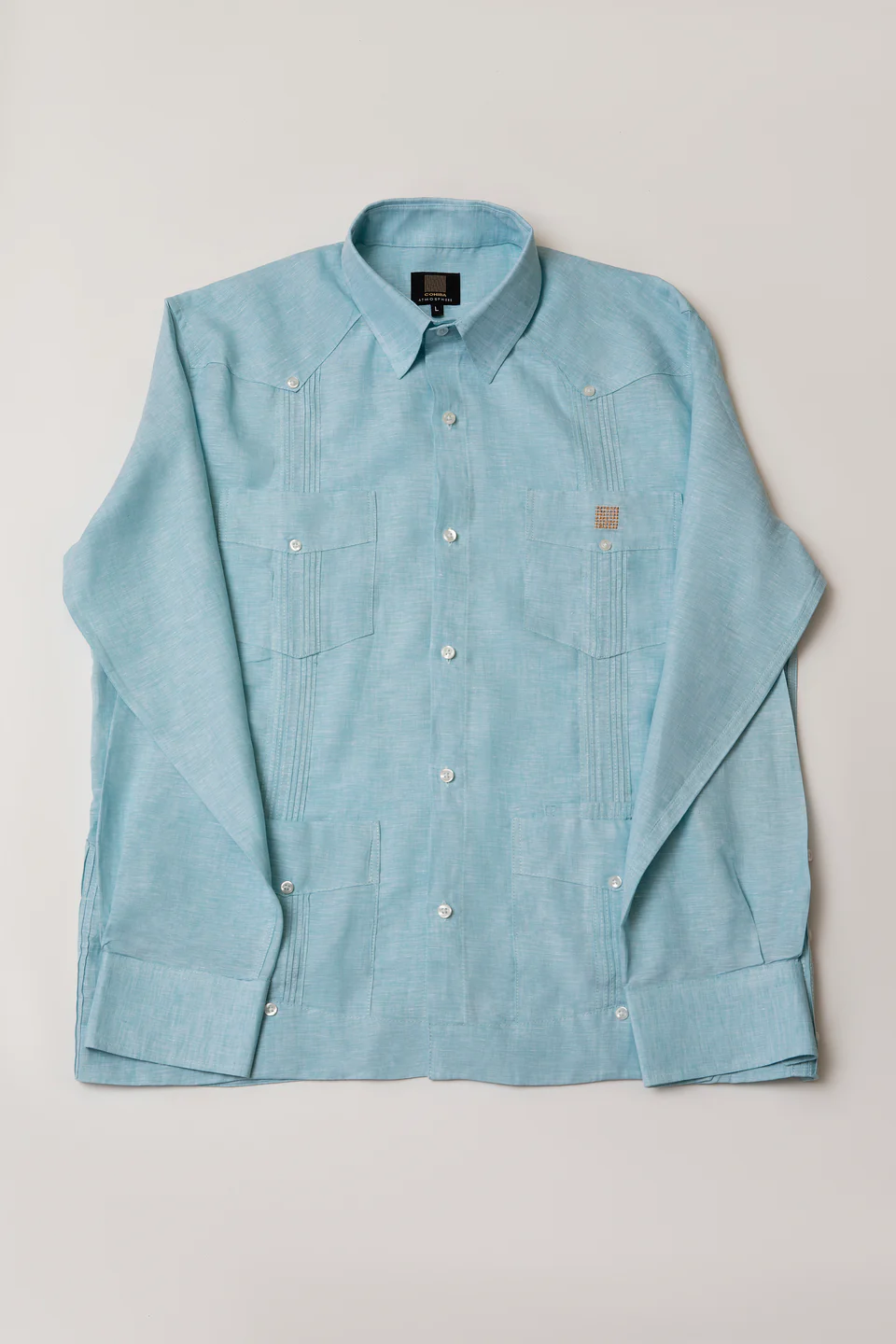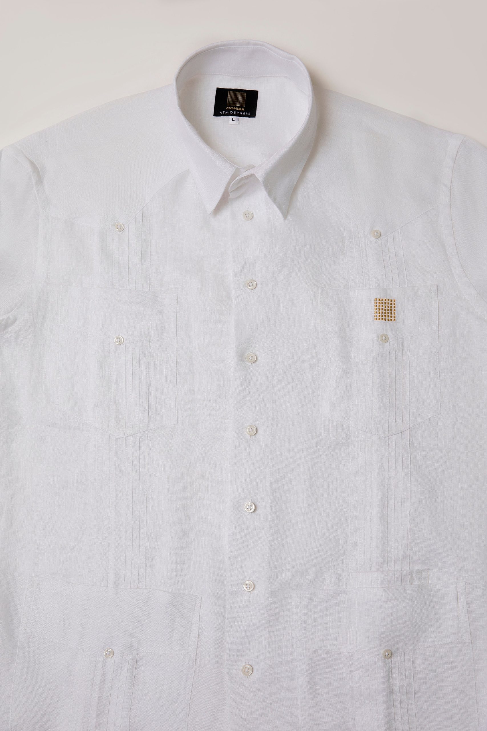 Manufactured out of 100% Linen fabric, it is distinguished by its four square pockets and the two vertical, pleated stripes (also called alforzas) on the front of the shirt. The Guayabera shirt was born in the Cuban provinces as a utility shirt/overshirt, only to become one of the most fashionable liveries for dignitaries and heads of state all over South America.