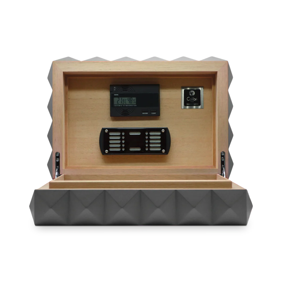 The Colibri Quasar Humidor brings bold, contemporary design and modern humidification technology to your cigar collection.