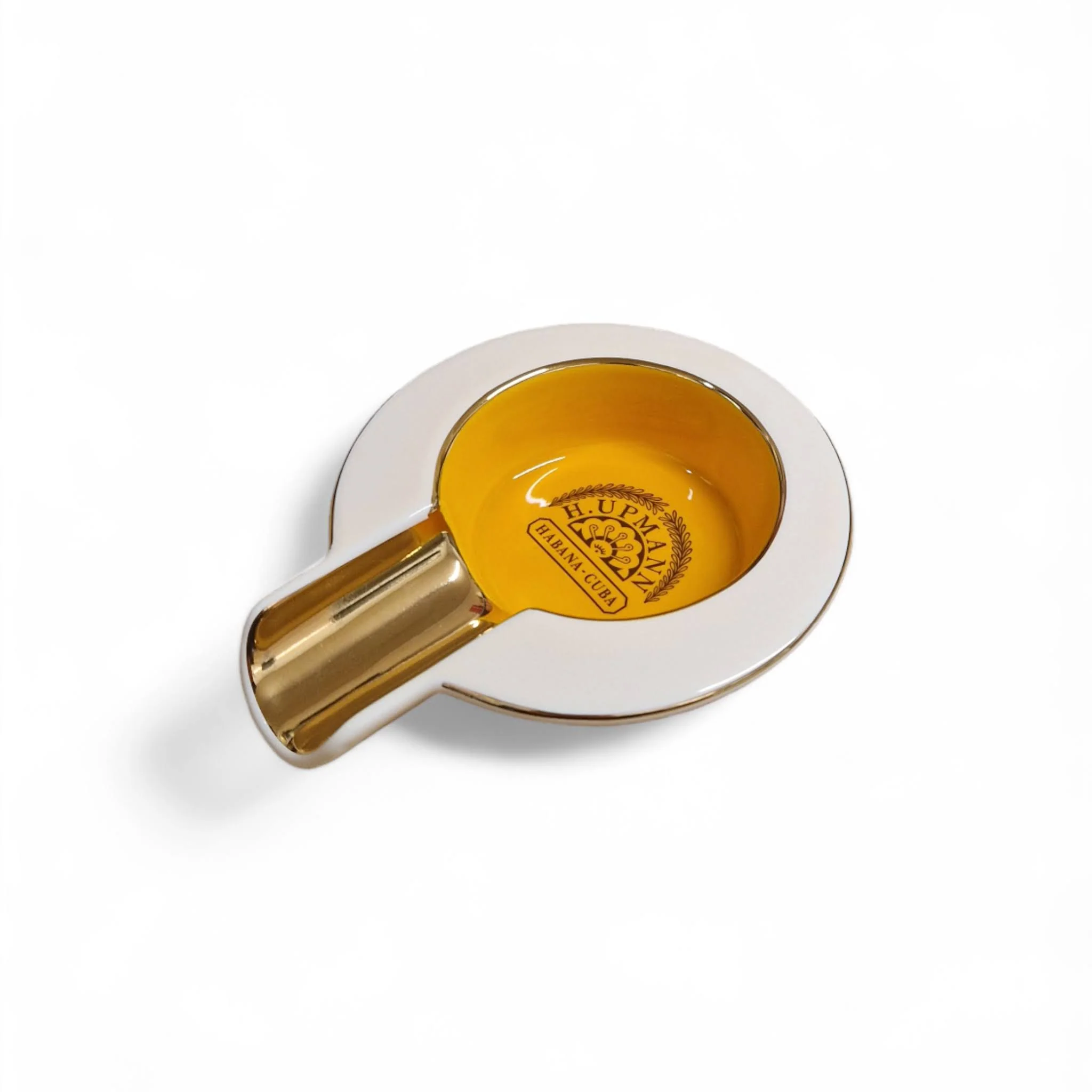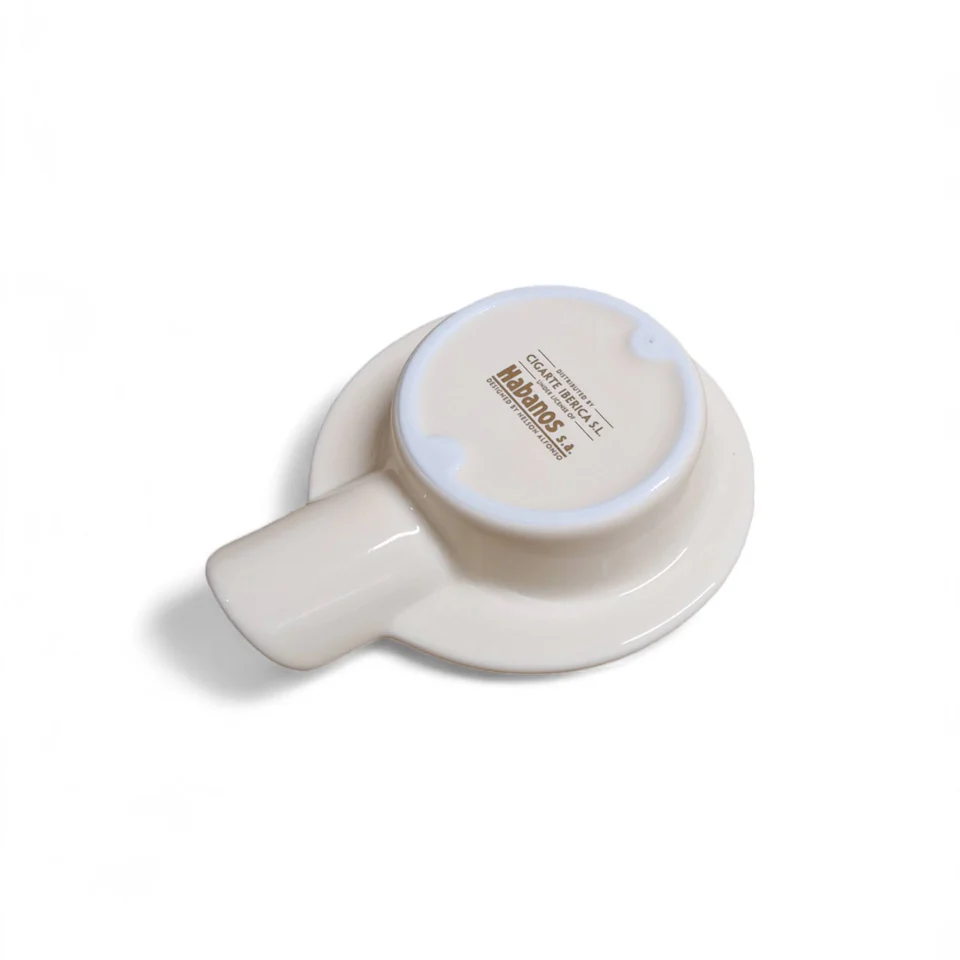 The cigar ashtray  has a cream finish and the H. Upmann Cigars logo at the centre of the dish. It provides 4 shelves for you to rest your Cuban cigars, making it ideal for office meetings and small gatherings.